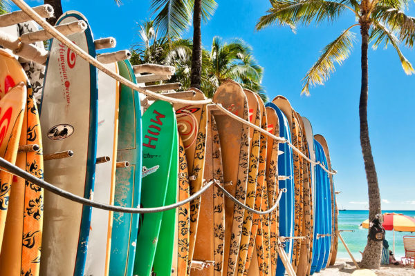 The Hawaiian Islands’ near-shore water temperatures remain comfortable throughout the year. The average water temperature is 74° F (23.3° C), with a summer high of 80° F (26.7° C). Wave action varies dramatically between island coasts and seasons. Summer waters are typically gentle on all beaches. During the winter on many north shore beaches, Pacific storms drive ocean swells towards the islands, creating The Hawaiian Islands’ legendary big waves.